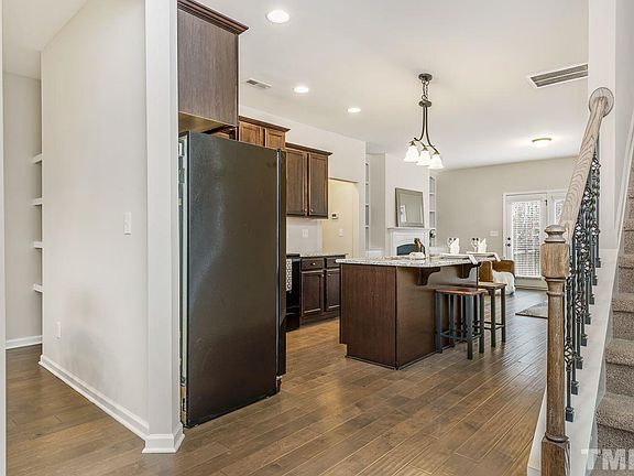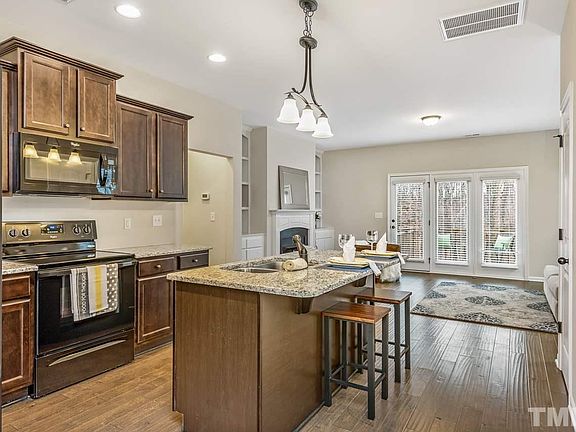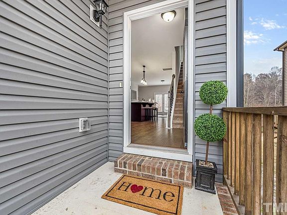 Better than new, 4 bed/2.5 beauty w/ HUGE bonus, paved trail to Neuse River! FIRST FLOOR MASTER suite w/ dual walk-in closets, spa bath & coffered ceilings. Open, modern floor plan features hardwoods, granite, built-ins & large formal dining. Three generously sized bedrooms up w/large free standing bath & recreation room. 2" blinds throughout! Enjoy privacy of a lot that backs to a natural, tree-lined buffer zone from your deck. HOA dues include two pools, gym, and off peak golf! Welcome to your home!