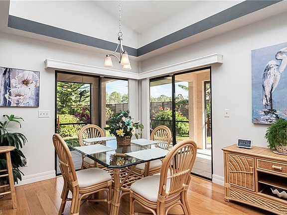 This beautifully upgraded home reflects the true Florida lifestyle. Skylights in the main room make it bright and inviting and the eastern exposure provides a great setting for morning coffee and afternoon cocktails. New roof and skylights in 2019, hardwood flooring in the main main living area, upgraded kitchen with LED lighting and much more make this home absolutely move-in ready. The property is located in a popular and very active 55+ community that has many organized social activities including dances, barbecues, bridge, pinochle, tennis, pickleball, bocce, shuffleboard and billiards. There is also an oversized heated Community Pool for you and guests of all ages. Downtown Naples and its beautiful beaches are less than 15 minutes away.