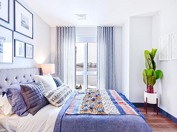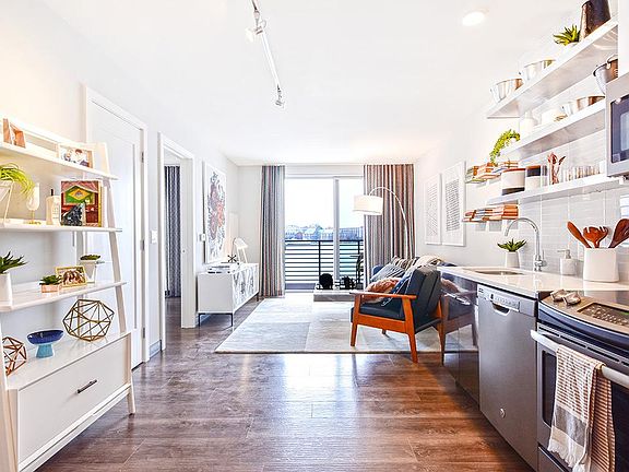 Hardwood-style flooring Quartz countertops Slate GE Profile appliances Industrial, moveable kitchen island* Full-size, vented GE washer and dryer Custom Elfa walk-in closets Deep-soaking bathtub Oversized windows Interiors by Los Angeles-based Novogratz Top floor lounge and terrace Courtyard with fire pit, lounge areas Outdoor game area Fitness Center featuring state-of-the-art equipment Bike storage Pup spa Concierge 24-hour package pick-up Refrigerated storage for grocery deliveries NimNim 24/7 dry cleaning with same-day service Zipcars onsite