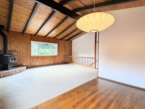 Step inside to fresh interior paint and brand-new carpeting throughout, along with newly installed dimmable ceiling lighting that gives the whole place a clean, move-in-ready feel. Downstairs, large windows fill two inviting bedrooms with natural light, and a two car garage. Upstairs, the vaulted-ceiling living room flows into the kitchen, with plenty of counter space and storage for everyday meal prep and casual gatherings. The adjoining dining area opens to your outdoor oasis an ideal Marin-climate space to relax, entertain, and enjoy the fresh air.
