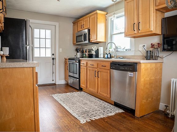 Welcome to this lovely maintained updated Cape which offers loads of POTENTIAL for EXPANSION and LOTS of N.E charm! The inviting living room with a classic brick fireplace greets you when you enter this home! Updated bathroom! Hardwood floors throughout and freshly painted interior! The beautiful arched walls lead to a charming formal dining room with a built in corner chalk wall! ! The updated kitchen is loaded with lots of cabinets, modern accents, and stainless steel appliances. The deck off of the kitchen leads to a wonderful backyard space which is great for relaxing and entertaining. Located next to Boyce St park there is plenty of outdoor space for everyone to enjoy! Newer water heater, new water filtration system. Workshop in basement for that handyman! Garage with remote! Newly paved parking area in front! FEATURED on THIS OLD HOUSE on PBS in 2023! This lovely house is turnkey and ready for its new owner! Nothing to do but move in! Come see all that this house has to offer!