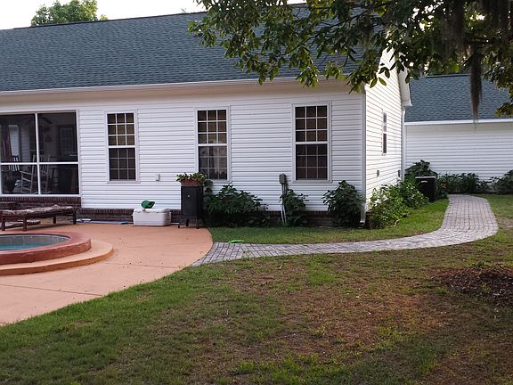 Charming home on a beautiful 1 acre lot offering over 3000 square feet of living space, a large pool and expansive patio area within a few blocks of the boat landing and lake!! The home sits back off of Brittany Lane and offers a large, fenced in back your with pool and pool house. There are custom tile floors and concrete counters which really pop in the kitchen and bathrooms. There are stainless appliances and a pantry. The bedrooms are carpeted and the offers Dual first floor Master bedrooms, on of which is truly a Master Suite. This room is at the back of the home with direct access to the screened porch and overlooks the large lot and pool. There is a large detached garage with a covered breeze way. This is a ''turn-key'' home ready for your family. Schedule a showing today!