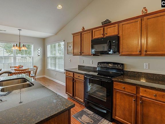 - RoomKitchenFeatures: Granite Counters, Kitchen Island, Eat-in Kitchen, Cabinets-Stained, Floors-Laminate, Bar