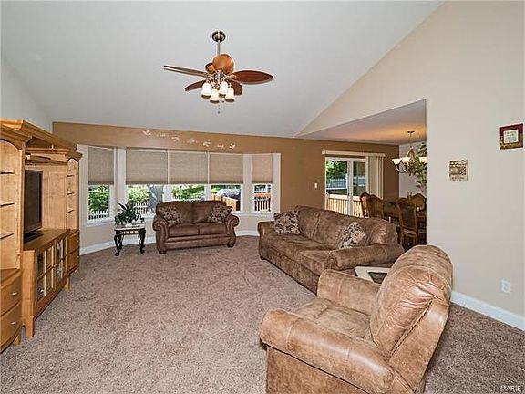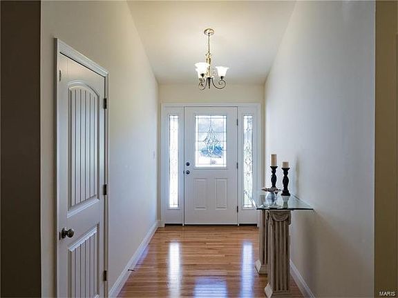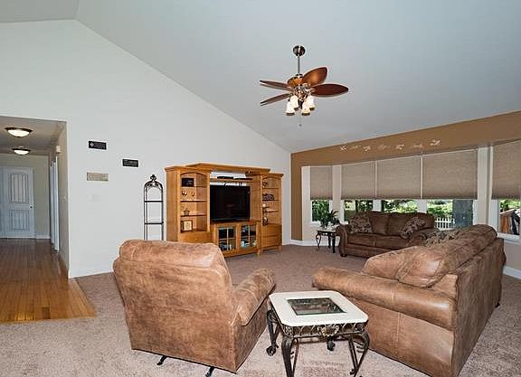 Spacious 1700+ sq ft ranch style home sitting an large lot in cul-de-sac. Beautiful brick front elevation with 3 car garage and landscaping. Covered front porch greets you. As you enter into the large foyer you are immediately drawn to the view of nature and trees from the 5 bay window in the great room. The great room also has vaulted ceiling. Wood floors are in foyer, hallway and dining room. Ceramic tile in kitchen and breakfast room. Kitchen with center island large enough for 2 bar stools also has a pantry and stainless appliances. Main floor laundry just off the kitchen with rough-in for mud sink. Master bedroom with walk-in closet, master bath has double sinks, separate tub and a large shower with a seat. 2 panel white doors throughout. Upgraded brush nickel lighting throughout. Large 15 x 16 deck off of the dining room. Basement is a 9ft pour with a rough-in bathroom, picture window and walkout. Fully fenced yard with white picket vinyl fencing. Custom window treatments.