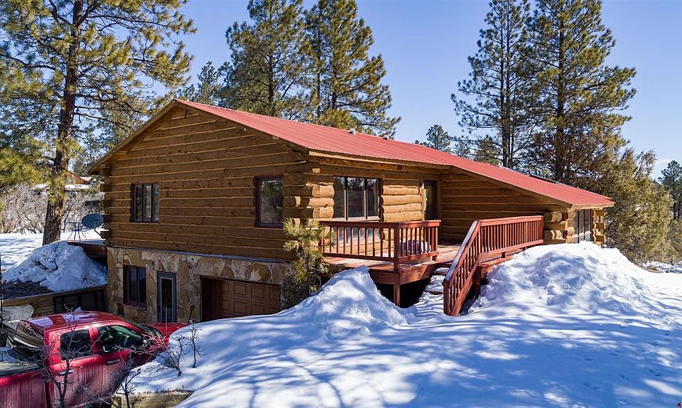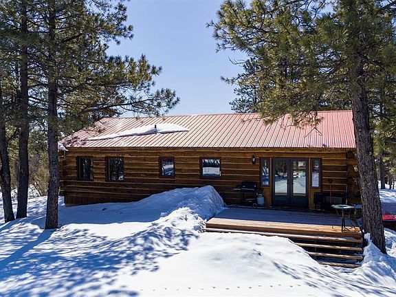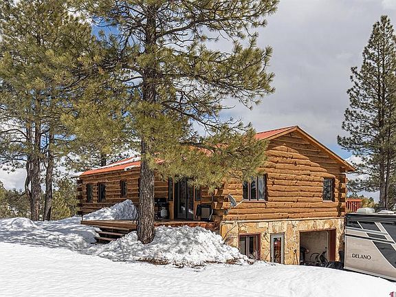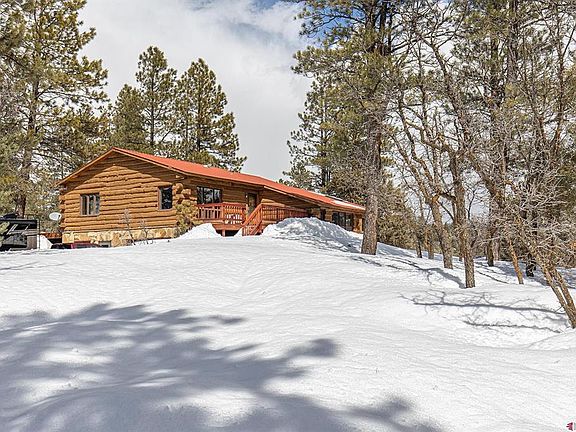 2100 sq ft log home on 3.5 acres. No HOA. Sold with the majoirty of the furnishings in place. Attached single car garage, plus another 2 car detached garage, allows for plenty of covered storage for both vehicles and toys. There's also a huge room in the basement that provides extra storage. Vaulted ceilings and mountain views help make this a true Colorado cabin experience. The 3.5 acres are covered up with towering ponderosa pine trees as well as mature gamble oaks. Lake Nighthorse is just a short 6.5 mile drive for all your waterfront recreational desires. Low annual taxes of only $1,495.64. Be sure to check out the 3D Floorplan in the virtual tour link.