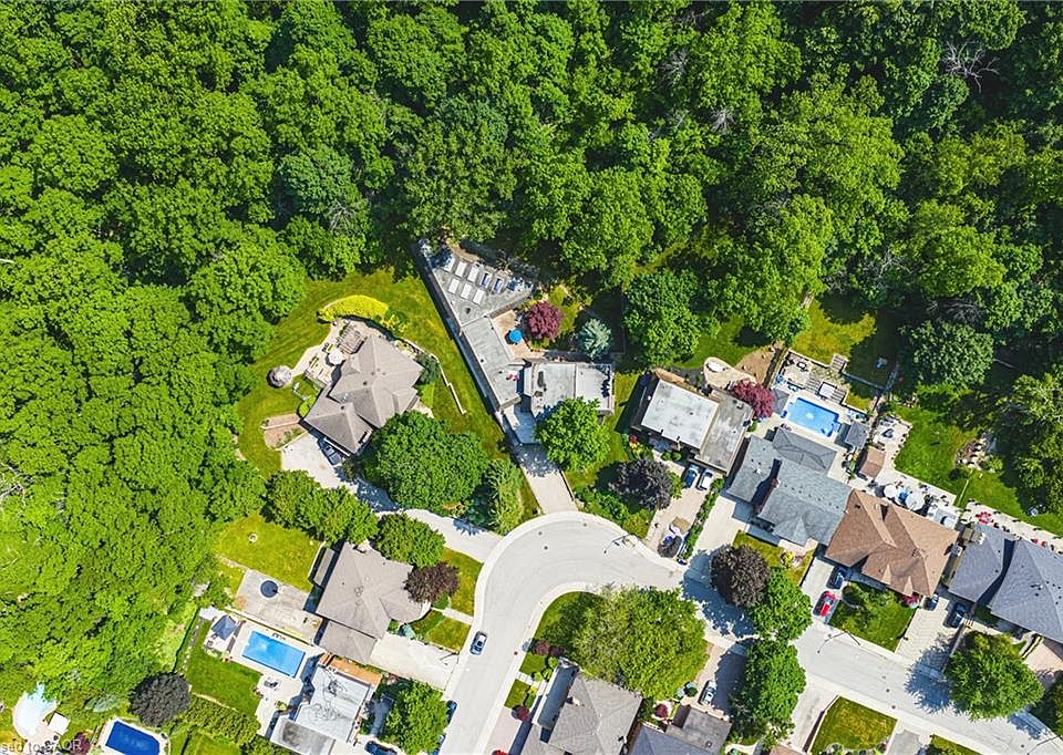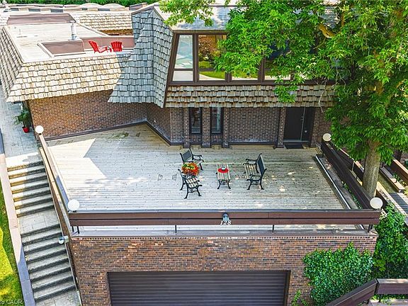 Two Homes, Privacy and a Cottage/Chalet Setting - Welcome to your sanctuary from a far too busy world...2-homes-in-1 nestled into the Niagara Escarpment...WITH LAKE ONTARIO VIEWS, and no rear neighbours, ever! This Custom Built Bungaloft with additional In Law Suite / Apartment is the ultimate multi family set up and needs to be seen to be believed. Originally commissioned by one of Hamilton's most prominent Businessmen and Philanthropic families (Owen and Marta Boris), this architectural marvel was designed to integrate seamlessly into nature. The centrepiece of the Main Level is the Great Room, with a 16 foot high Beamed and Vaulted Ceiling, Brick Focal Wall, Copper Wood Burning Fireplace, and Floor to Ceiling Windows looking outward upon a Landscaped Courtyard and the Escarpment. Up above sits the Master Loft, complete with BR, Ensuite, Loftice with Lake Ontario Views, Walk-In Closet and Walk-Out Terrace. Updates completed by the current, and only 2nd Owner, include a new Kitchen with Quartz Counters, B/I Appliances, Wine Fridge and Custom Cabinetry, Master Ensuite, Roof, Furnace, A/C, HWT, and Elevated Deck, also with Lake Views. The Courtyard, Master Terrace and Elevated Deck provide three separate outdoor areas to enjoy the surroundings. The Main Level of the Original Home also boasts two Retro Chic Bathrooms, and three good-sized Bedrooms, all with Courtyard Views. The Lower Level adds even more value, with Inside Entry from the Garage, a Massive Gym, Music Studio/Rec Room/Flex Space, Full Bathroom and Laundry. A 2022 Reno converted an Indoor Pool to a 4 BR Apartment with Separate Entrance, perfect for a Two-Family / Multi-Generation / In-Law situation. Serenity, space and flexibility await you - Welcome Home.