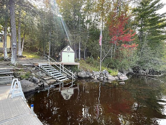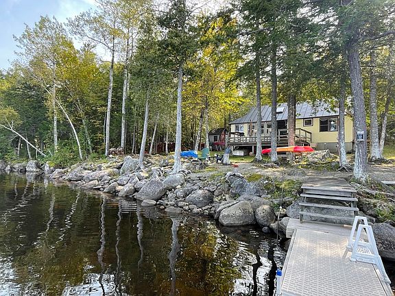 Camp is calling! 208' of frontage along Great Moose Lake with views from every room. This well-maintained camp with many recent updates has 1 bedroom, full bath with shower, loft space, heat pump for heating and cooling, and deck overlooking the water. The lot totals 2.49 acres with land on both sides of Bunker Ln giving you options for an additional building site. Boat house, two sheds, and full crawl space offers plenty of storage. Deck with steps to water for easy access and 3 piece Shore Master dock included with sale. Call today for more info!