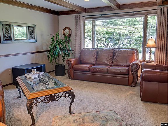 Super nice ranch-style brick home. Two large great rooms with electric fireplace and built-in bookcases and beams. 18 x 36 in-ground pool with fence, detached storage building, and Anderson windows. Buyer is responsible for checking square footage and acreage. Listing agency is not responsible for inaccuracies.