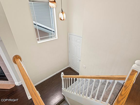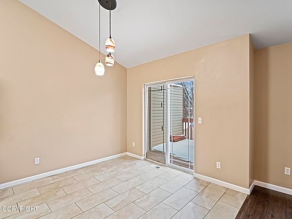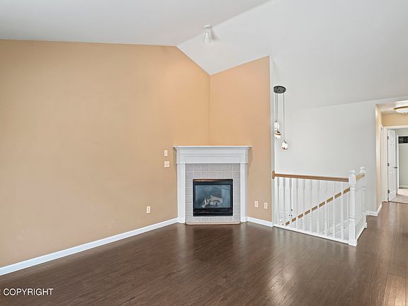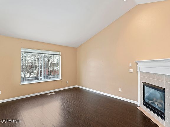 Condo located at the end of a cul-de-sac. Recently updated. NEW carpeting, newer vinyl plank flooring. Two spacious bedrooms downstairs and large master bedroom with walk in closet upstairs. Open living space with vaulted ceilings and gas fireplace. This condo also features a large fenced-in backyard with not one but TWO decks and fenced-in insulated dog house/run. 5 min drive to JBER.Inspection done, repairs done. Ready for new owners! Low dues that include snow removal and water/sewer.