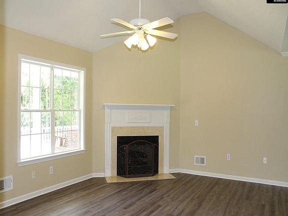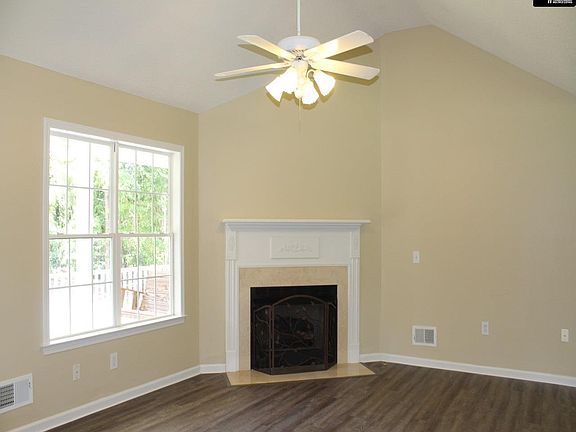 - Living Room: Fireplace, Ceiling-Vaulted, Floors-Laminate, Ceiling Fan