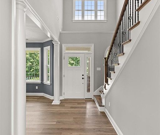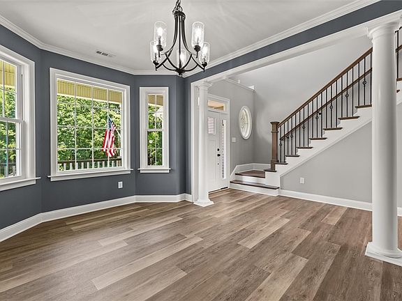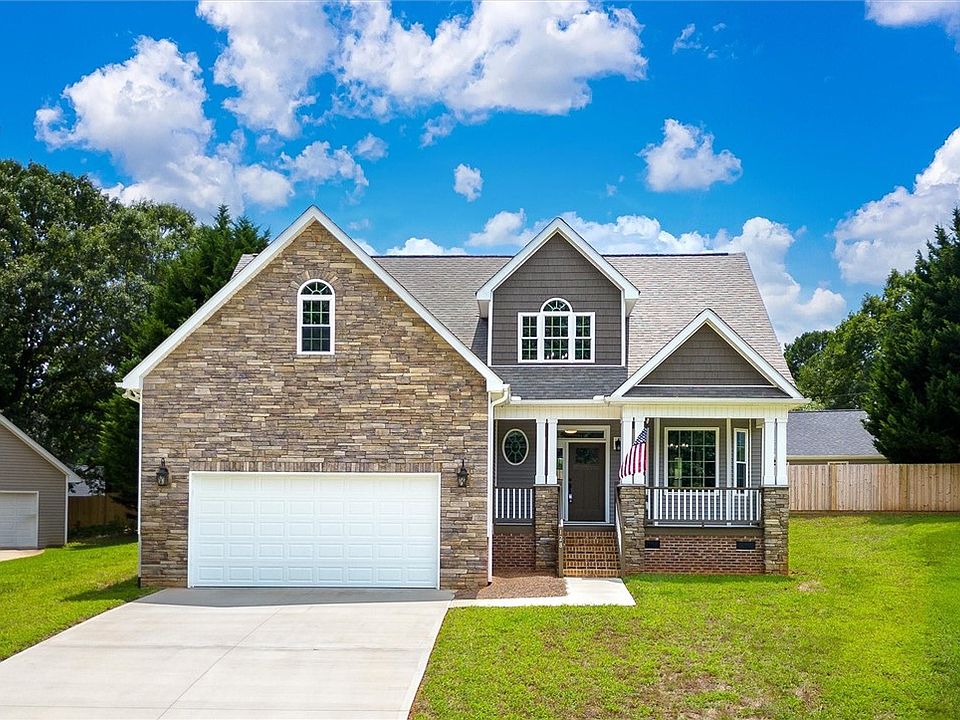 NEW CONSTRUCTION - NO HOA - GREAT LOCATION. 128 Carlissa Court is a custom home is in the Cedars at Maryann community, conveniently located near the city of Easley, only 15 miles to downtown Greenville, and minutes to shopping and dining. This gorgeous custom home has 3 bedrooms (a finished room over garage that could be a 4th), 2.5 bathrooms, and is nestled on a private 0.24-acre cul-de-sac lot. The property has wonderful curb appeal featuring a charming front porch, an architectural shingled roof, and stately stone and dark grey vinyl siding. Upon entering the home, you will be welcomed by an impressive 2-story foyer. To the left of the foyer is an elegant formal dining room that overlooks the front yard. The living areas of the main level include the formal dining room, a great room, kitchen, and breakfast room. These spaces have an open concept layout creating great flow for family gatherings or entertaining. The kitchen is modern and features custom cabinets, gleaming granite countertops, a stylish tile backsplash, a breakfast bar, and stainless appliances. There is a bright and airy breakfast room ideal for informal dining that leads out to a covered porch area perfect for grilling, alfresco dining, or simply enjoying nature in the serene backyard. The spacious family room has a soaring cathedral ceiling, tons of natural light, and a floor to ceiling gas stone fireplace that is sure to impress. Also, privately tucked off the rear of the first floor is a relaxing owner's suite with trey ceiling complete with a walk-in closet, charming bay window, and a private bath that has a free-standing tub, a separate shower, and a dual sink vanity. Rounding out the main level is a half bath for guests, and a laundry room which has access the two-car attached garage making off-loading groceries and shopping items a breeze. The grand staircase leads to a landing that features a continuation of the gorgeous iron railings and lighting featured throughout the home. This landing area overlooks the great room and the foyer. On the second story level you will find two additional bedrooms each with a double closet, a full bathroom, and a large finished room over the garage that could be a theater room, home office, home gym, playroom, teen hangout, or a 4th bedroom if needed - the possibilities are endless. Attention to detail is evident at this beautifully designed home.