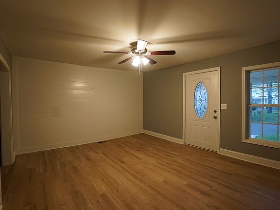 Cozy ranch home on small corner town lot, newly renovated and move in ready! This 3BR-2BA plan offers some new siding, shingle roof, replacement windows, plumbing & electric, lighting, 2 brand new bathrooms, some new floor reinforcement, subfloor and flooring. New covered porch and side deck. Home needs a few more odd & end items but Seller is done and selling "As IS" condition. Central town location, minutes to schools, restaurants, medical and Barkley Lake and launching, as well. Driveway to either side of home on the corner lot with side lawn area. Central H/A appx 2 years age. * Fiber optic and cable available. 2nd Bedroom could be Family Room or office, if needed.