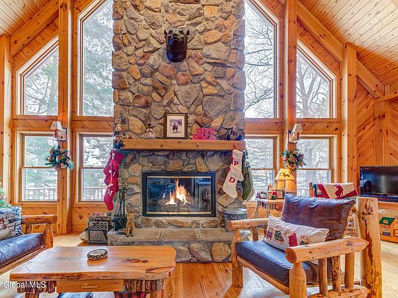 ****Highest & Best Offers are due by Sat 12/16 at 5PM***** Expansive lakefront property with over 240' on the Great Sacandaga and 2800 sq feet of living space! Beautiful rolling lawn to the water, with spectacular sunrise views. Gorgeous stone fireplace in vaulted great room; open to dining and kitchen. Wrap around deck w/wood burning stone fireplace & screened porch. Two bedrooms on main level; two on second floor (includes loft). Full bath on all 3 floors. Huge family room and bar in walkout basement plus patio w/outdoor shower. Radiant heat in all 3 floors. Down a private lane, far from traffic. Large shed. Most furnishings included. Plenty of space to add a garage. Rolling aluminum dock included. New water heater. Boiler serviced this year. Fireplace cleaned last year.