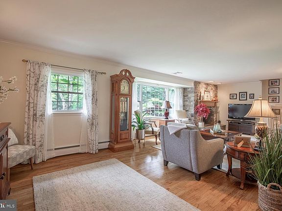 Tucked just around the corner from the heart of the Borough, this exceptional home radiates not only charm and character but also the deep care and pride of devoted owners. Every inch has been lovingly maintained and thoughtfully upgraded, creating a warm and welcoming atmosphere. Outside you’ll instantly feel the magic of the grounds—lush, manicured, and cared for with reverence. The backyard feels more like a private park with majestic shade trees swaying gently over a pristine lawn, framed by evergreens, vibrant perennials, and charming split-rail fencing. The shed keeps tools within reach for those who find joy in gardening. Enjoy morning coffee or quiet evenings from the terrace or either of the covered porches—the front with its picturesque tin roof and views of Bucks County fauna, or the back overlooking your private oasis. The main-level bedroom, with its own private entrance and full bath, offers flexible options—perfect for guests, extended family, or a home office sanctuary. A cozy family room in the front and a bright, sunlit office nook towards the back give you space to focus, dream, or relax. In the heart of the home, the remodeled kitchen shines with warm wood cabinetry, granite counters, and a tumbled tile backsplash—designed not just for beauty but for everyday living. An overhang for seating keeps the cook connected to guests, while the adjacent dining room flows into the living room, separated by pillars to add architectural grace and openness that keeps the conversation going. The living room is anchored by a striking stone fireplace with a raised hearth and classic mantel, where cozy evenings and joyful holidays have unfolded for years. Every window tells a story—of sunrises through trees, quiet snowfalls, spring blooms, and glimpses of local wildlife. Upstairs, the primary bedroom offers a peaceful escape with oak floors, a walk-in closet, and a tiled bath with stall shower and granite vanity. Two additional bedrooms and a full hall bath complete the second floor, offering comfort and charm at every turn. Practical features speak to the thoughtfulness that’s gone into this home: a whole house fan to fill it with crisp spring air, attic storage via pull-down stairs, a clean and organized basement, a hookup for a whole house generator, and an oversized two-car garage. Set in the award-winning Central Bucks School District, this home is not only in a prime location—it’s a rare and beautiful reflection of the people who have loved it.