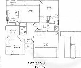 Essex Homes Santee 'A' Floor Plan. Spacious 3 Bed 2 Bath Split Floor Plan. Ten foot ceilings in Kitchen and great Family room. Kitchen Open to Family