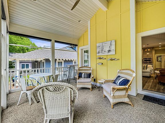 Rare opportunity to own a 5 year old custom built home in Beachwalk that's never been rented. Nothing cookie cutter or builder grade box about this one! It has all the charm of Nantucket but nestled in a Beachwalk sweet spot! Immaculately maintained and move in ready. Bright, open floor plan, vaulted & tray ceilings, main floor primary ensuite bedroom and delightful laundry space, and built in custom bookcases. Designed for full time residents so the thoughtful layout with a chef's kitchen, amenities, storage, and one of the most coveted treasures in Beachwalk - A GARAGE! Additional vehicles enjoy parking in the driveway and in front along Childers Lane. The generous screened porch with an aggregate stone floor compliments the exterior design, making it nearly maintenance free! Gorgeous Kitchen Aid stainless appliances, including a bar refrigerator and classic quartz counters. This sunny cottage has 5 bedrooms and 4 baths, with upper and lower level living spaces. Easily walkable to the pool, tennis court, basketball, Lake Kai, and the new clubhouse. And skip right over to the lovely pond with a water feature for a little fishing off the pier. Home is being offered with most furnishings included. Please inquire as to what is excluded. You're only a few minutes walk to the most glorious beach! Do yourself a favor and come see this one before its gone!