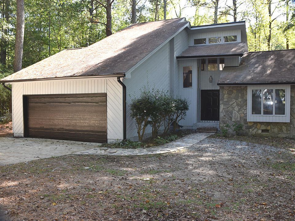 Move in now to this 3 bedroom pet friendly home with huge deck and 2 car garage nestled under the trees on this .92 acre wooded lot. Easy access to I-40 and White Oak Shopping Center. Skylights and large windows fill the space with light. Hardwoods in kitchen and dining area and luxury vinyl plank flooring just installed in other rooms. Kitchen includes large dining bar and is open to the dining area. Doors open from the dining area and family room on to the 336 square feet brand new deck overlooking your private wooded backyard. The stone front fireplace adds warm to the family room. The 2nd floor oversized primary suite offers a vaulted ceiling, dual sink vanity, large soaking tub, separate shower and walk-in closet. A 2nd floor loft overlooks the family room and is great for office or exercise equipment. 2 additional bedrooms, a full bathroom and the laundry room are all on the first floor. 1 adult pet under 50lbs permitted with $300 pet fee and $25/month pet rent.