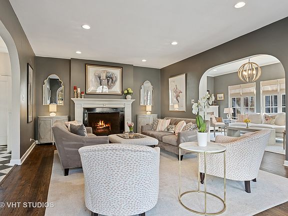 Stunning Mediterranean style home surrounded by almost half an acre of lush grounds! Inviting first floor features exactly what today's buyer is looking for: newer, eat in white kitchen overlooking family room with fireplace and first floor laundry with mud room entry! Rounding out the first floor are formal living and dining rooms, a charming sunroom and a screened in porch. Oversized patio makes the perfect backyard retreat! Master suite with room for office or attached nursery, walk in closet, and dual vanity bath. Two additional generously sized bedrooms share hall. bath. Finished basement and newer garage. Foot path into Indian Hill Road for scooter & bike rides - walk to Indian Hill train station & park!