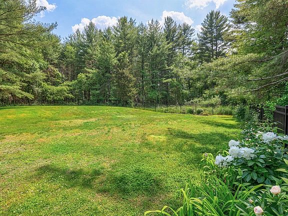 Welcome to your private oasis in Hopkinton! Nestled on 1.5 acres, this sun-filled 3-bedroom ranch offers stylish single-level living in a serene wooded setting. The open-concept living room features vaulted ceilings, skylights, and a striking stone fireplace. The updated kitchen boasts granite counters, stainless steel appliances, gas cooking, and direct access to a patio and fully fenced backyard—perfect for entertaining with a hot tub and established blueberry bushes. A flexible dining room doubles as a home office or guest space. The modern bath includes a double vanity, tiled floor, and heated flooring for added comfort. A stackable washer and dryer are conveniently located just outside the bathroom. Enjoy year-round efficiency with central A/C and a brand new heat pump. Professionally landscaped with a circular driveway and expansive level yard, this home blends comfort, function, and natural beauty just minutes from local amenities.