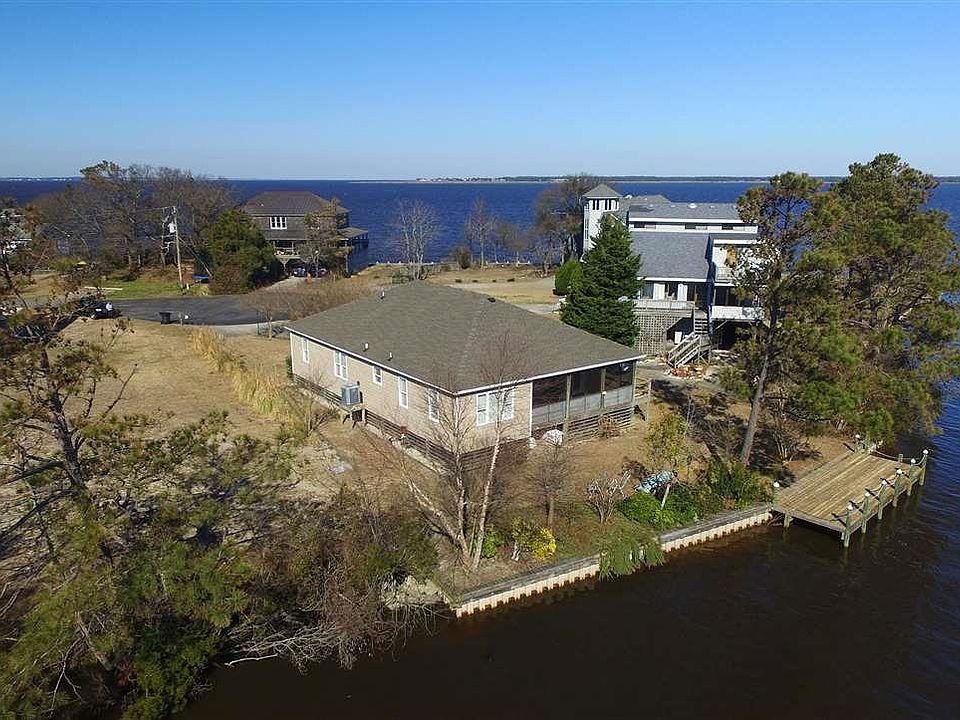 REDUCED OVER $29,000 ! WOW!!! TAKE ANOTHER LOOK! ONE LEVEL LIVING - NO STAIRS!!! NEW SIDING! NEW ROOF! HIGH AND DRY. Handicap Friendly! New Roof! New Siding! Water views from EVERY ROOM! Best location in Colington Harbour! On protected lagoon with a dock and one minute shallow draft boat ride to wide open SOUND! High and dry PRIVATE! On Cul de sac on dead end Court. AND at the very end of Colington just before marina and community pool, tennis, clubhouse, playground!!! WOW!! Perfect for retirees ! One Level living! Great for young families! Second home! Light, bright open rooms with views everywhere! Sound views! (It's just across the street!) 3 big bedrooms! Dining area, open kitchen living area! BIG screened porch along the whole back facing water! BULKHEADED!!! Large 8000+ sq foot lot, pie shaped with 87+ feet on canal! You will love this house! Great location! Great Views! Waterfront and around the corner from wide open sound! DOCK! Gas Fireplace and gas hook up for grill on screened porch! Garage! HANDICAP friendly! Large Closets! Pull down attic stairs for more storage! Landscaped, Crepe Myrtle tree lined driveway! Adorable front entry! Show today! Sell now!