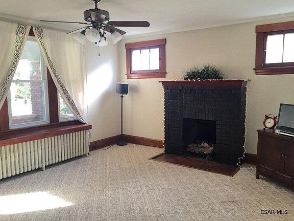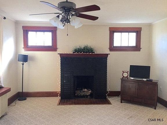 WESTMONT Solid brick 4 bedroom, 1 1/2 bath two story, large living room with natural wood trim and brick gas fireplace. Carpeting throughout. Back deck over looking yard, covered front porch, 2 car garage, newer windows and roof. Walk up attic floored for storage. Gas Hot Water heat.