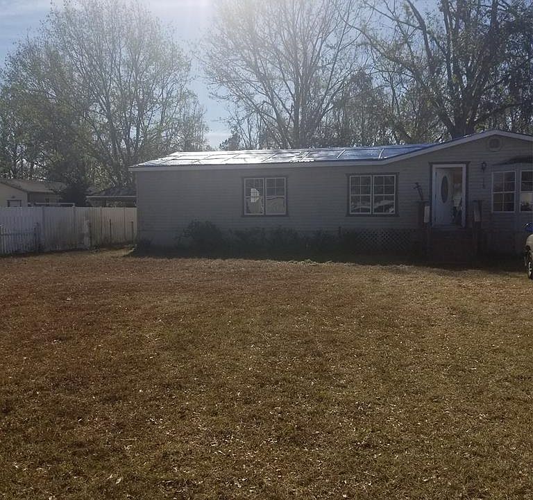 This spacious 4bd/2ba home sits on a 1/2 acre plus, with back yard completely fenced. Featuring a split bedroom plan with a master having a large walk-in closet and in the master bath, enjoy a round garden tub or separate shower and a vanity with double sinks. Large kitchen with island leads into the living room with a gas log fireplace. Very minor damage from Hurricane. New 30yr.shingle roof is being installed along with all new fresh paint, new flooring . A must see !