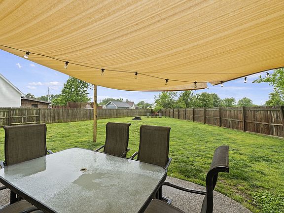 Gorgeous Home with Brand New Roof & new roof boots! Fenced back yard! 3 bedrooms/2 Baths, New huge black kitchen sink, New lvp flooring in living room & master, split floor plan, cathedral ceiling, custom cabinets, spacious rooms, tons of closets, big master suite with walk in closet. Aggregate driveway. Ring doorbell, stainless fridge, stainless stove, stainless microwave, stainless dishwasher & patio awning to remain. Patio table and chairs can remain.