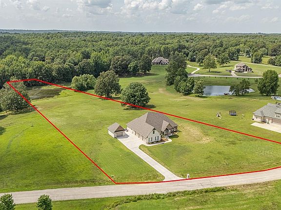 This home is a rare find! Experience country living on beautiful 5 acre pond with upgraded amenities! All paved roads will lead you to this one-of-a-kind, custom-built home. Resting in the desirable Bella Ridge Subdivision off CR 780 and situated on 2.80 acres, this home is sure to please. Featuring three oversized bedrooms, all with plenty of closet space, three bathrooms, an office, and an open floor plan with a stunning kitchen, all on one level. The kitchen boasts upgraded appliances, a large granite island, an ice maker, a gas cooktop, and a oversized walk-in pantry, all overlooking the immaculate living area with a stone fireplace and custom mantle. The dining space, located off the kitchen, features a wall of windows that overlook the gorgeous pond. The primary suite is spacious and includes a walk-in closet, a beautiful custom shower, and ample his-and-her vanities. Additional features of this home include an oversized three-car garage, a covered back patio, a large front porch, and a beautiful brick workshop with a garage door. The home is also prewired for a generator. You are sure to fall in love with this one!