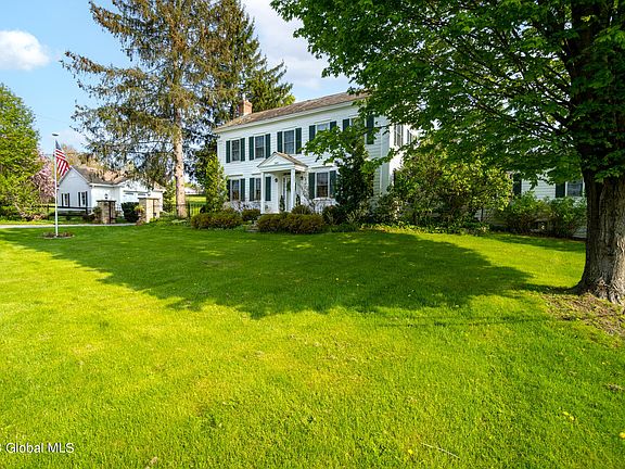 Exquisite Country farmhouse with peaceful surroundings! Historic interior w/wide plank floors. Newer Great-room w/cathedral ceiling & full rear window wall that adds views of the rolling picturesque landscaping. 1st floor is handicap accessible w/master bedroom addition, including a sunroom, laundry room & more. This well maintained property includes several barns, outbuildings & putting green, & creekside cabin, perfect for children's playhouse. Fenced area offers an in-ground pool w/handicapped lift, gazebo & large patio. Hike or picnic the land. Center White Creek runs through property! Many barn & pastures for horses or other animals. Whole house generator. 30 Minutes to Saratoga & 6 miles to Vermont. Property located in Agricultural district. Outstanding country property!