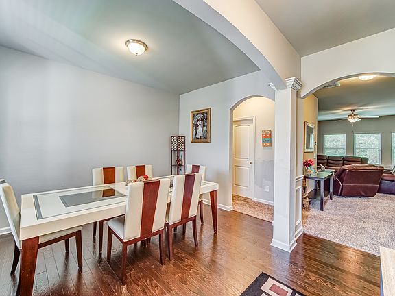 - Kitchen Features: Eat-in Kitchen, Pantry, View to Family Room, Stone Counters, Kitchen Island, Cabinets White