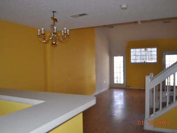 Nice townhome that backs up to wooded area with view of pond . Three bedrooms and two full baths. Master bedroom downstairs of living room . Half bath also downstairs for guest just off kitchen . One car garage and off street parking a plus . Walking distance to WalMart . Needs some cosmetic repairs . Regime fee covers water/sewer exterior maintenance roof landscaping trash pickup pool and termite bond. There is a $346 Working capital fee and a $175 COA+Transfer fee to be paid by the buyer at closing.