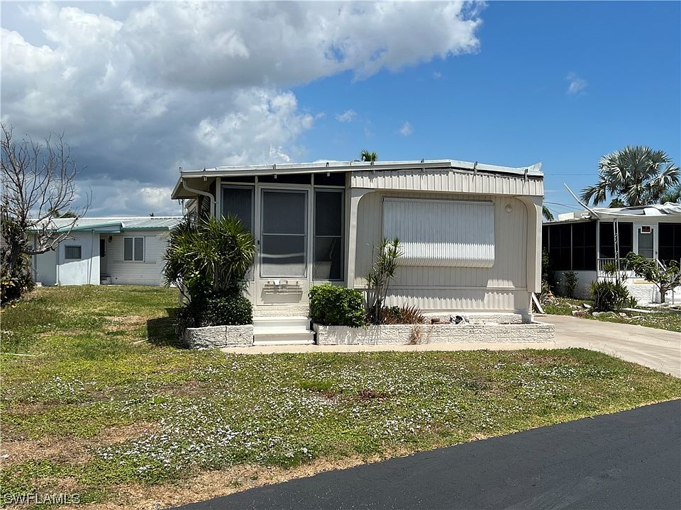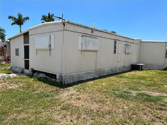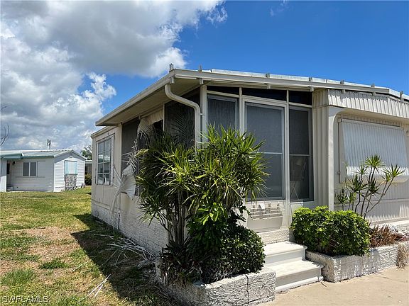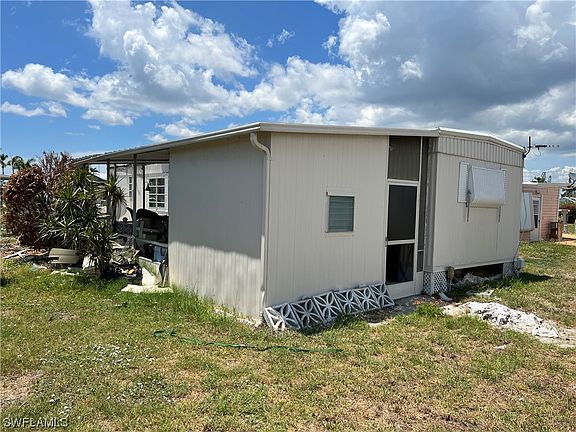 A great opportunity to own in the Thunderbird 55+ manufactured home community and you own your own lot. The Thunderbird Community features a low HOA (which includes internet and trash pickup twice a week), heated pool, shuffleboard, clubhouse with pavilion and many activities, plus an outside storage lot available for those extra cars and “toys”. Great location, minutes from Fort Myers Beach and Sanibel Island and close to restaurants, shopping, medical and more! Home was impacted by Hurricane Ian. The lot is a great location for a new model. The current home is not habitable and would need major renovations if you would choose to keep it.