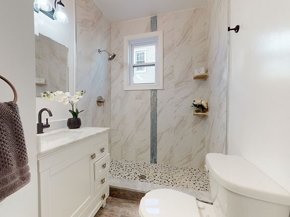 Beautifully finished two family home is full of charm and centrally located. First floor offers 2 sizable bedrooms, renovated kitchen and open concept living dining room. Second floor unit offers similar layout with bonus 3rd floor living space with full bathroom. Both units have independent access to the back yard. Laundry hookup in both units!