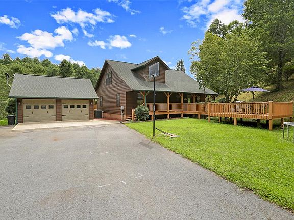 Come see this 3 Bedroom & 3 bathroom home located inside 5 acres offers plenty of room close to town. Home features a large open concept Kitchen/Dining/Living room, every bedroom has its own bathroom & walk-in closet. Two large bedrooms suites are located on the main level along with the Laundry & bathroom. Large Master suite Loft has a separate bonus office/reading area. Recently installed is a new Trane HVAC. 2 Car-detached garage comes with drywall and electric. Large wrap around porch/deck areas for outdoor entertaining. Large backyard with a flowing stream and fish stocked pond. Recently added granite countertops in kitchens & bathrooms, refinished hardwood floors & newly stained exterior. Only a few minutes from Hanging Dog Recreational Area/ Boat Ramp on Lake Hiawassee.