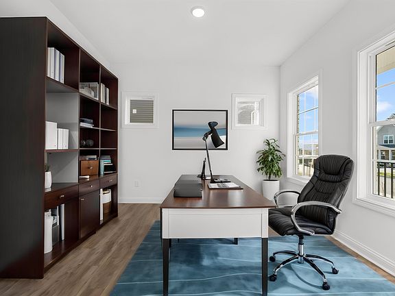 MOVE-IN READY - The Nancy plan by James Monroe Homes maximizes its square footage with the best of both stories: open concept living on the 1st floor and bedrooms/lounging areas on the 2nd floor. The exterior features the French Country Cottage facade. A flex room off the foyer provides the home buyer the autonomy to adapt it to a dining room or study. The kitchen includes a center island, stainless appliances, and a corner pantry. A morning room has been added to the rear of the home. A patio off the family room offers a view of the lush landscaping. The first floor also includes a floating breakfast area, a family room, and a powder room. The second floor owners suite offers a linen closet, a shower, and a walk-in closet. The second floor also provides three additional bedrooms, a shared full bath, and a dedicated laundry room. These connected living features are included in every James Monroe Home: a Ring doorbell and chime, WiFi garage door opener, 2 iDevice outlet switches, a data hub, and a Wifi thermostat. All James Monroe Home owners receive the Build With Confidence Promise. Furnished photos are virtually staged.