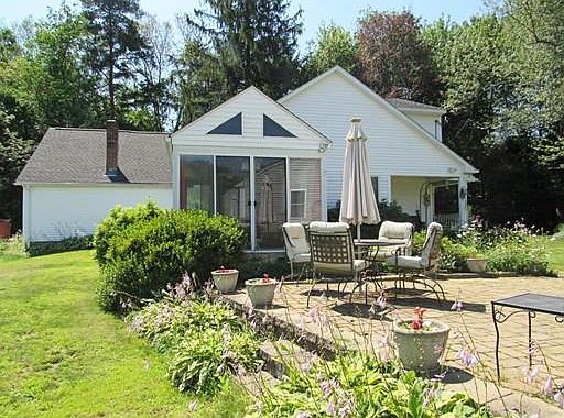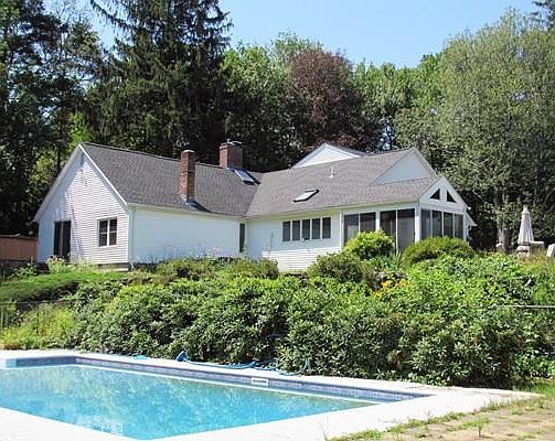 Colonial with acres of privacy for your outdoor enjoyment. In-ground pool, sports court (for tennis or basketball), stone patios, hot tub, open fields perfect for sports or horses. 31x22 oversized 2 car garage will fit your cars and lawn toys. Farmers porch, covered entry to main door, and 3 season Sunroom give plenty of places to admire the nearly 6 acres. Kitchen is updated with vaulted & beamed ceiling, granite topped cabinets & stainless steel appliances. First floor has a bedroom with its own showered bath, two smaller bedrooms, an office, study, pantry closets, & a 26x15 Living Room with stone fireplace & pellet stove. Sliders lead to stone patio with hot tub. Up the turning staircase to the Master Suite with Bedroom, walk-in closet, Full Bath with laundry units, & an office/nursery/guest room. Some baseboard heat & some radiators. Two oil tanks for economical oil purchasing. Generator hookup. Septic system only 5 yrs old. Roof 3-4 yrs old. Most windows have been replaced.