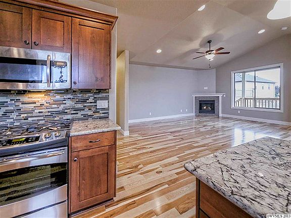 Single lvl 3 car grg Inside you will find engineered HW flrs thruout w/recessed ceilings & crown molding. Custom Alder cabs, walk in pantry, solid slab granite & full backsplash. SS appls w/built in micro & gas cook top. cvrd deck w/can lites, clg fan & gas. Travertine flrs & counters in MBR, 36' tall dual vanities, crown molding, HUGE WIC. Fully landscaped with UGS front and back. 9 Ft Ceilings.