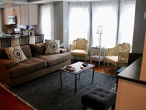 2 bedroom apartment available on quiet block with tons of parking in Media Borough. Walk to State Street's stores and restaurants, and Trader Joe's in less than 10 minutes. The apartment is on the second and third floors of a carefully renovated twin home. The stairs up to the second floor feature an exposed brick wall. Enter the main floor to a kitchen with granite countertops, stainless steel appliances, gas stovetop, huge pantry, and a breakfast bar; a laundry area with a sliding barn door; a dining area; a living area with bay window and custom built-ins; a spacious bathroom with an oversized shower, linen closet, and granite countertop; and the smaller of the two bedrooms. Off of the dining area, double doors lead to a spacious deck. The entire third floor is a large master bedroom with a big custom walk-in closet and a built-in desk area. Please note that the bedroom on the main floor is much smaller than the third floor bedroom. The unit has central air. Landlord pays water and sewer. Tenant is responsible for gas and electric. No pets, no smoking. Apartment is available in mid-July. Showings available starting Thursday 6/5. Owner pays for water. Renter pays for gas and electric. Lawn care included in rent. No pets. No smoking. 12 month lease required.