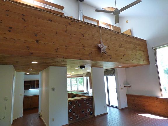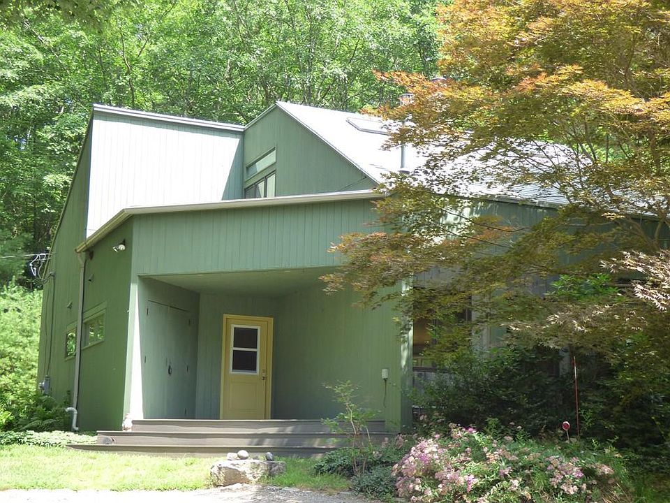 Passive solar contemporary nestled in a great community up on Chestnut Hill - Cable recently brought to the street! Large 4.2 acre lot has a babbling brook, organic garden area and greenhouse. Open kitchen and living room with lofted ceiling, tiled floors and a wall of windows. Newer propane stove with back-up electric baseboard heat and additional wood stove hook-up. Two bedrooms with new carpet and an office loft with skylights. Great mud room and outdoor storage. Come build your dreams - five minutes to the Leverett Coop and 20 minutes to UMass. Proximity to state forest and wildlife management areas and Robert Frost Trail is a plus. Come see!