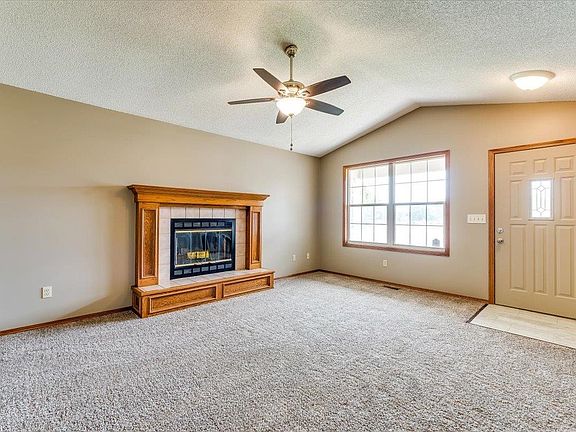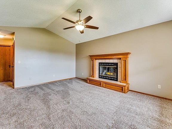 Covered front porch welcomes guests into the large living room with gas fireplace. Kitchen is open to the Dining Room & includes a pantry & easy access to the back patio and fully fenced backyard. Two large bedrooms with generous closets share a well appointed bath. Main floor laundry is conveniently located. Lower level family room is oversized & would accommodate a game table and large sectional. Third bedroom with walk in closet has access to an updated full bath. Lower level storage as well as two car garage with storage shelves. Easy living in this twin home (only kitchen wall connects to neighbor) located on the north side of Mulvane with easy access to Derby & K15.