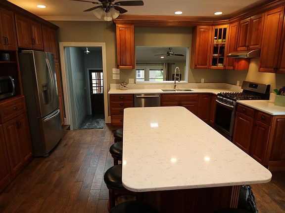 - AMENITIES: Main Floor Laundry, Breakfast Bar, Porch Enclosed, Main Level Bedroom Suite, Closet(s) Walk-in, Twin Sink Vanity, Tub/Shower Combination, Tub and Separate Shower, Stand Up Shower, Utility Sink, Countertops-Stone, Kitchen Island, Natural Woodwork, Custom Cabinetry, Dryer Hook Up Gas/Elec, Split Br Floor Plan