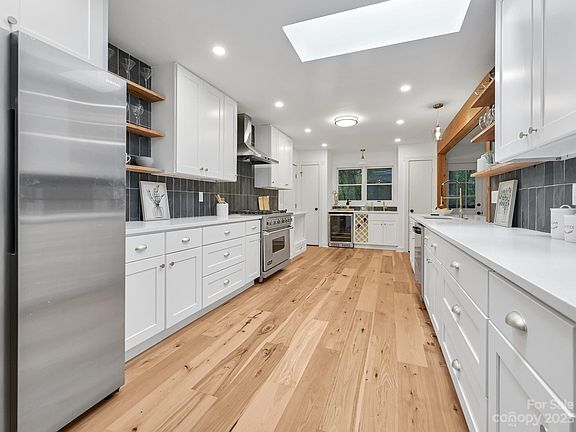 Welcome to 128 East Laurel Lane in Etowah NC! Located in a safe and quiet neighborhood, this property offers a convenient lifestyle with its close proximity to major trailheads, the Asheville airport, and downtown Asheville just a short 30-minute drive away. The recently renovated interior is flooded with natural light and boasts a chef's kitchen with quartz countertops, custom cabinetry, and a 36" gas Viking stove. With a huge flat yard and potential space to build an ADU, there is plenty of room for outdoor activities and expansion. Home also features a whole house generator for peace of mind, one-level living, a sunroom, wraparound porch, and mature hardwoods. The property offers a fully encapsulated crawlspace, new electric and plumbing systems, and a 40-year metal roof. Additionally, there is an oversized two-car garage and a new asphalt driveway for your convenience. Don't miss out on this meticulously renovated gem that combines modern amenities with classic charm!