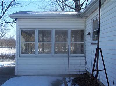 Sold as is - Enclosed front porch has carpet and built-in desk. Bedroom on first floor. Eat-in kitchen with pantry. Full bath has lots of storage. Upstairs large landing could be third bedroom. House has vinyl siding. Three car garage plus small shed. Needs some tender loving care. There is a 12x12 sunroom for summer enjoyment.