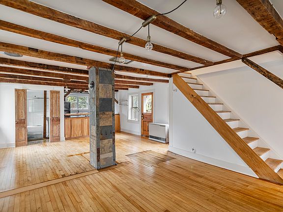 Bursting with charm, this pristine vintage village home offers a prime location just minutes from I-89, with sidewalks leading to many of Richmond's village amenities such as restaurants, breweries, and local shops. The home boasts an inviting open floor plan complemented by a blend of hardwood, softwood, and slate flooring. Custom built-ins, exposed wood beams, and natural woodwork add to its allure. The fenced, private backyard features a deck, garden, and spacious shed, while the kitchen is highlighted by unique copper countertops, among many other delightful features. Exterior repainted this past summer, interior and floors redone this fall. Seller is a licensed real estate agent in Vermont.