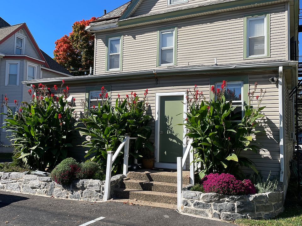 This 3 Bedroom 2 Full Bathroom apartment features 10 foot ceilings, and Master Bedroom with, oversized luxury closet, 2nd bedroom has private full bath, 3rd bedroom has a closet and would make nice child's room or office. It has a full kitchen, with dishwasher, and stainless steel appliances. The bathroom and mudroom in the back are recently renovated. Offstreet parking in the back of the property, offers 2 parking spaces. Very close to restaurants and shops. Mexican Restaurant next door and town center 3 blocks away! Conveniently located next to Rt. 130 with a 15 minute ride into center city Philadelphia. The landscape offers a variety of edible plants such as, plums, figs, and blackberries.
