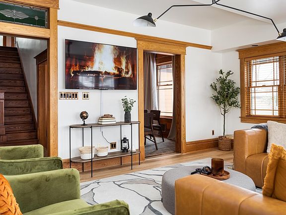 Discover the best kept secret of Downtown Cadillac – an "Oasis in the City!” Nestled discreetly on Pine Street, this exceptional property offers privacy and tranquility, style, and function, just one block from downtown. The exterior boasts an in-ground saltwater pool (heated), large hot tub, patio areas for relaxing with friends, lush landscaping with a comprehensive irrigation system, LED-lit palm trees, natural gas tiki torches, and the stunning "Twin Falls" water feature, making it a true entertainer's paradise. Over a decade of meticulous renovations have transformed this home with exquisite details, incredible style, while maintaining all of the original details of this craftsman home, including stained glass transom windows with brass hardware, vintage arts and crafts tiles, and fixtures. The main floor features a gourmet kitchen complete with commercial stove and hood, a formal living room with a granite fireplace - color drenched, moody, and romantic. The formal living room, facing Pine Street is surrounded by windows, bathing this space in warm daylight, even on the grayest of days. The main floor primary bedroom with hardwood floors, is both expansive and expertly curated, anchored by a private entrance to the patio oasis. Custom bathrooms on each floor offer thoughtful details with tiled showers, underlit quartz counter, and a spa like feel in your own home. Ascend the original custom staircase to the second floor and discover three additional bedrooms, an a gorgeous paneled library, with private balcony overlooking downtown and Lake Cadillac just beyond. The lower level is equally impressive, offering a three-car heated and finished garage with sealed concrete floors, a mudroom wash area complete with two washers and two dryers. But wait… the best is yet to come… Slide the secret bookcase door and reveal your very own speakeasy, theater, and game room. Now zoned as B-2, with an STR permit, fully transferable. Seller is a licensee in the state of Mich.