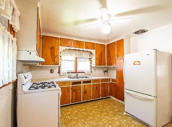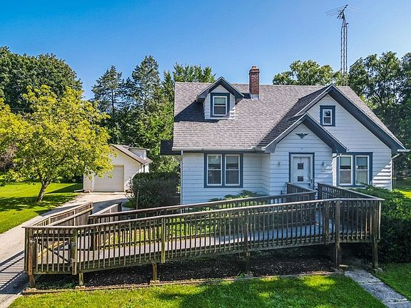 Captivating cape cod built in 1946 on a double lot (100' x 125' two tax parcels), kitchen, dining room, living room. one bedroom on main floor with more finished space upstairs. There are beautiful original features (stunning natural maple woodwork, many built-in storage drawers/closets, and evidence of wood flooring in some of the rooms). Forced air furnace/central air., full basement, detached 14' x 26' garage, asphalt driveway, lovely level yard. Fox River and 464 acre Silver Lake with multiple beaches and parks are within walking distance. A lake walking path is at Cogswell DR & Locust DR. Private well, municipal sewer. Updates: (2008) roof three tab shingles, 35 year warranty;(2006) windows with transferable lifetime warranty, and newer overhead garage door, "Land of lakes" offers 'year round water/ice/snow recreation (Wilmot Vail) is 5 minutes south.
