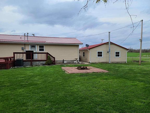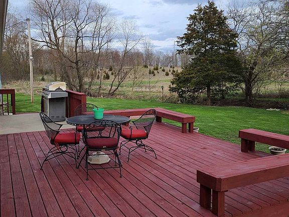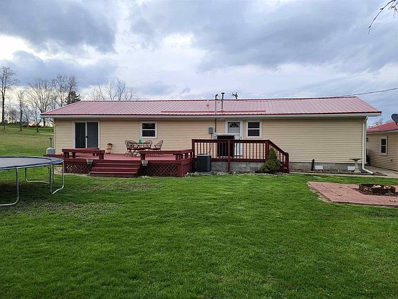 Situated just outside of town - this country home is a 4 bedroom 1 bath home. (one bedroom used to be a 2nd bathroom- coud be converted back). The back side of the home is serenity. A Private large deck is perfect for entertaining and watching the wildlife. Seats 12+. A patio area with its own fire pit. A perfect spot to set up your cornhole. New in last 5 years: Metal roof (has transferable warranty) , windows in home and garage, siding, doors, floors, electrical, hot water heater, plumbing(all pex), well, gas forced furnace and a/c unit, bathroom, each room has an electric baseboard heater as back up heat. The front porch is very welcoming with ceiling fan and tile floors. A perfect little oasis in the mornings. The living room boast an abundance of natural light, cove ceilings, hard wood floor and access to the massive deck. A formal dining area is open to the kitchen and living room, the kitchen has 48 door pulls meaning lots of cabinet space! Electric or Gas hookups for stove. The washer and dryer also boast electric or gas hook up. The screen doors on the home are andersons that the screen is on the top! The bathroom is 100% recently remodeled. It has a tiled shower and corian counter tops. Hand made bathroom vanity. Master bedroom has his and her closets. This home is STICK BUILT, not manufactured.