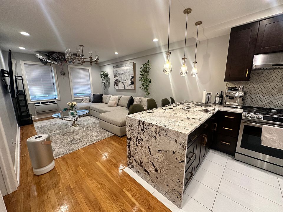 This unit is everything but cookie cutter. Here is a LARGE, WHOLE FLOOR, fully renovated 3 bed apt. The apt is PERFECT. All the bedrooms are 100% functional with large closets, and windows in all bedrooms and living room. If your sharing the apt, there is plenty of privacy. If you're moving in with your family, theirs plenty of space and room to entertain. Laundry is also included. Top of the line appliances, additional closet space in the living room/kitchen space, and a massive kitchen with an island that seats 4 people. 2 blocks from that waterfront, close to all your favorite Greenpoint restaurants, close to the G train and a scenic walk to the 7 train that brings you to Grand Central in 1 stop. Call Jay for a showing asap.