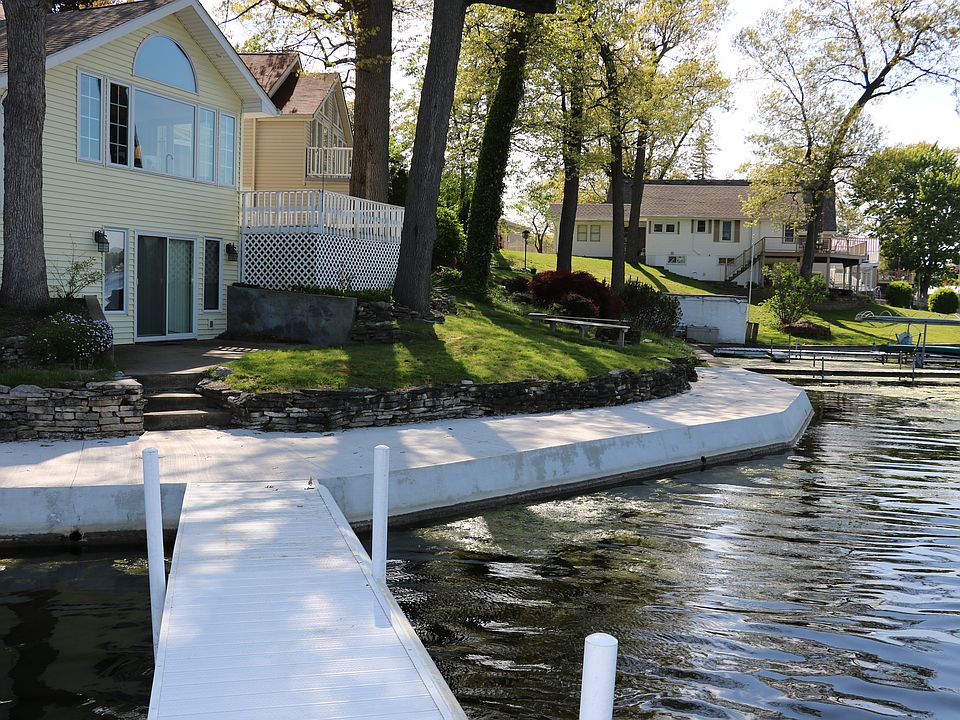 NEW LOWER PRICE!!! Welcome to this wonderful home on Webster Lake boasting expansive lake views. This home is nestled in the small hillside on a corner so the lake wraps around this fantastic property with 120' of shoreline. The home is move-in ready, not too big, but not too small! Perfect lake property for easy to care for and located on wonderful all sports lake! There are 3 bedrooms, 2 full baths on main level. Open concept living and a home designed for entertaining inside and out. The kitchen boasts custom made Amish walnut cabinetry. You can prepare dinner and enjoy the serene setting of Webster Lake. Moderate sized bedrooms. Partially finished lower level with walkout to the lake. 3rd full bathroom with stand up shower in unfinished area of the basement is an added bonus. Beautifully landscaped home. The deck on lakeside of the home is sure to be a favorite landing spot for enjoying the view of the lake while on the calm of the bay. Take in this incredible view without ever leaving your home. Move in, relax, and enjoy all this property has to offer.